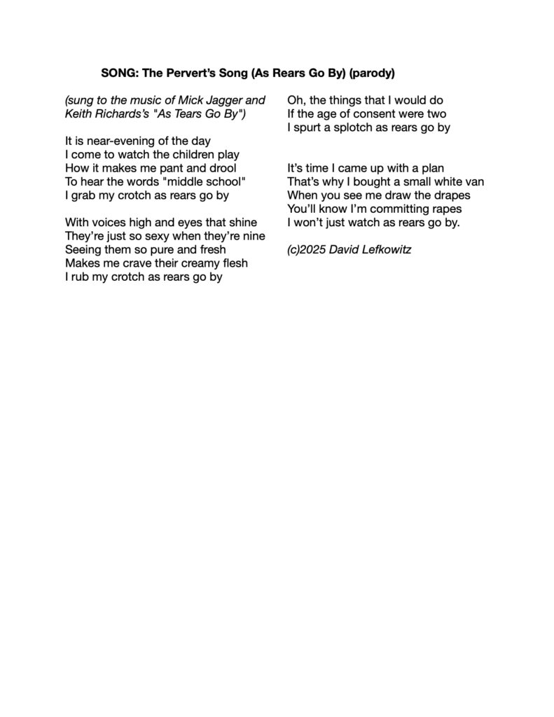 THE PERVERT’S SONG (As Rears Go By)