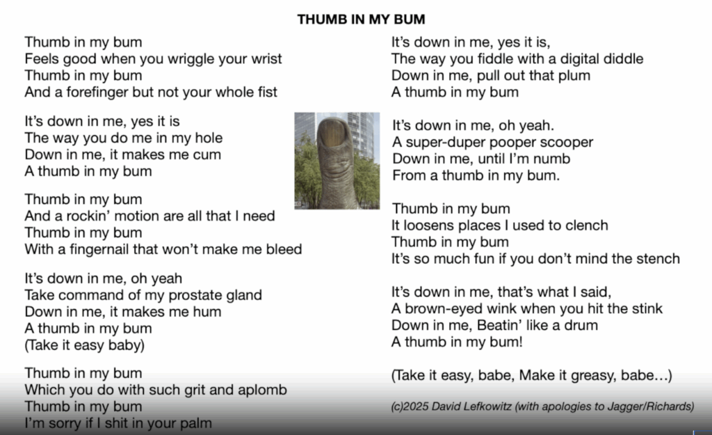 July 19, 2025 Playlist: “The Pervert’s Song (As Rears Go By)” (Dave; 02:33:30)